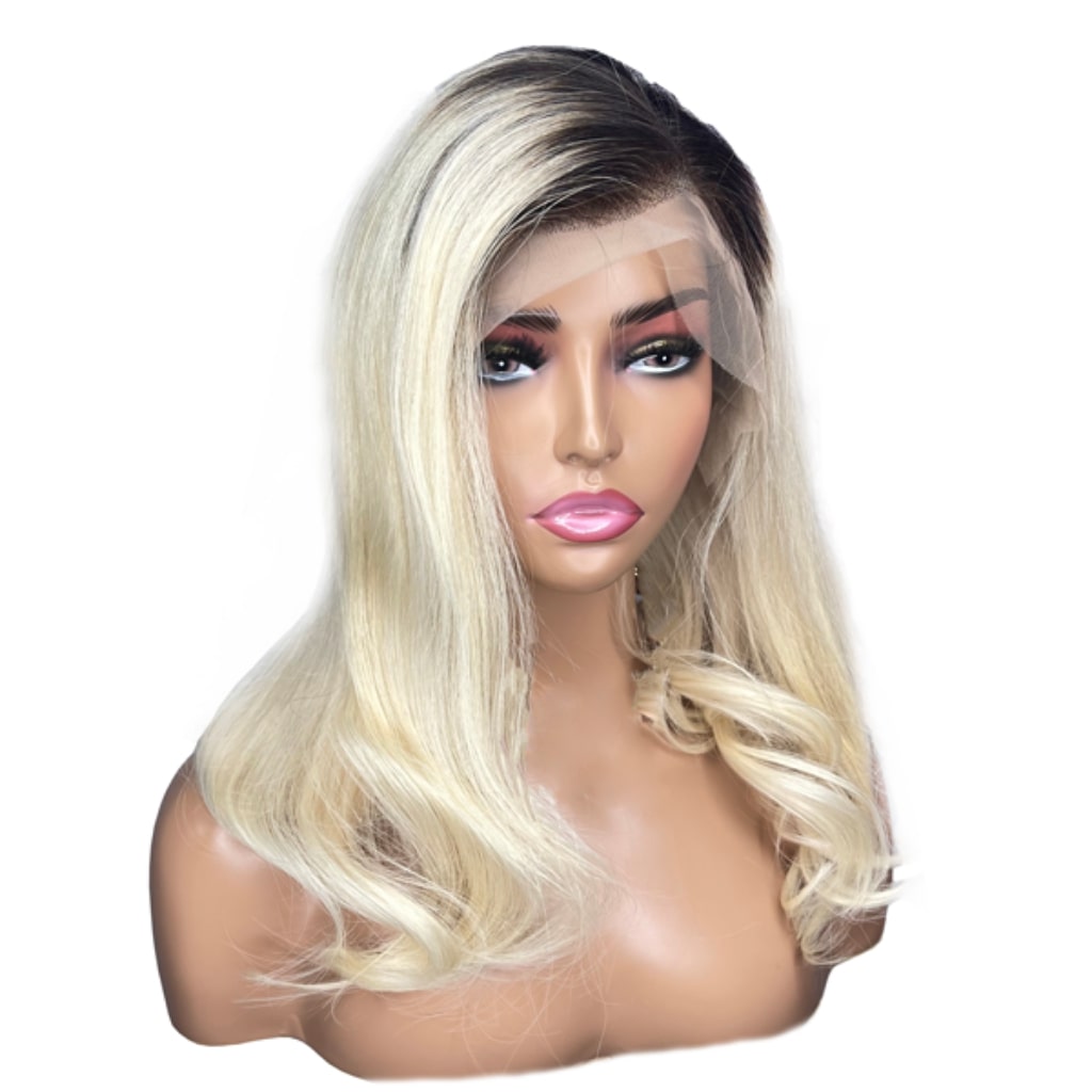 Sophia: 100% Human Hair Blonde Ombre Wig – Dark Roots, Seamless Style